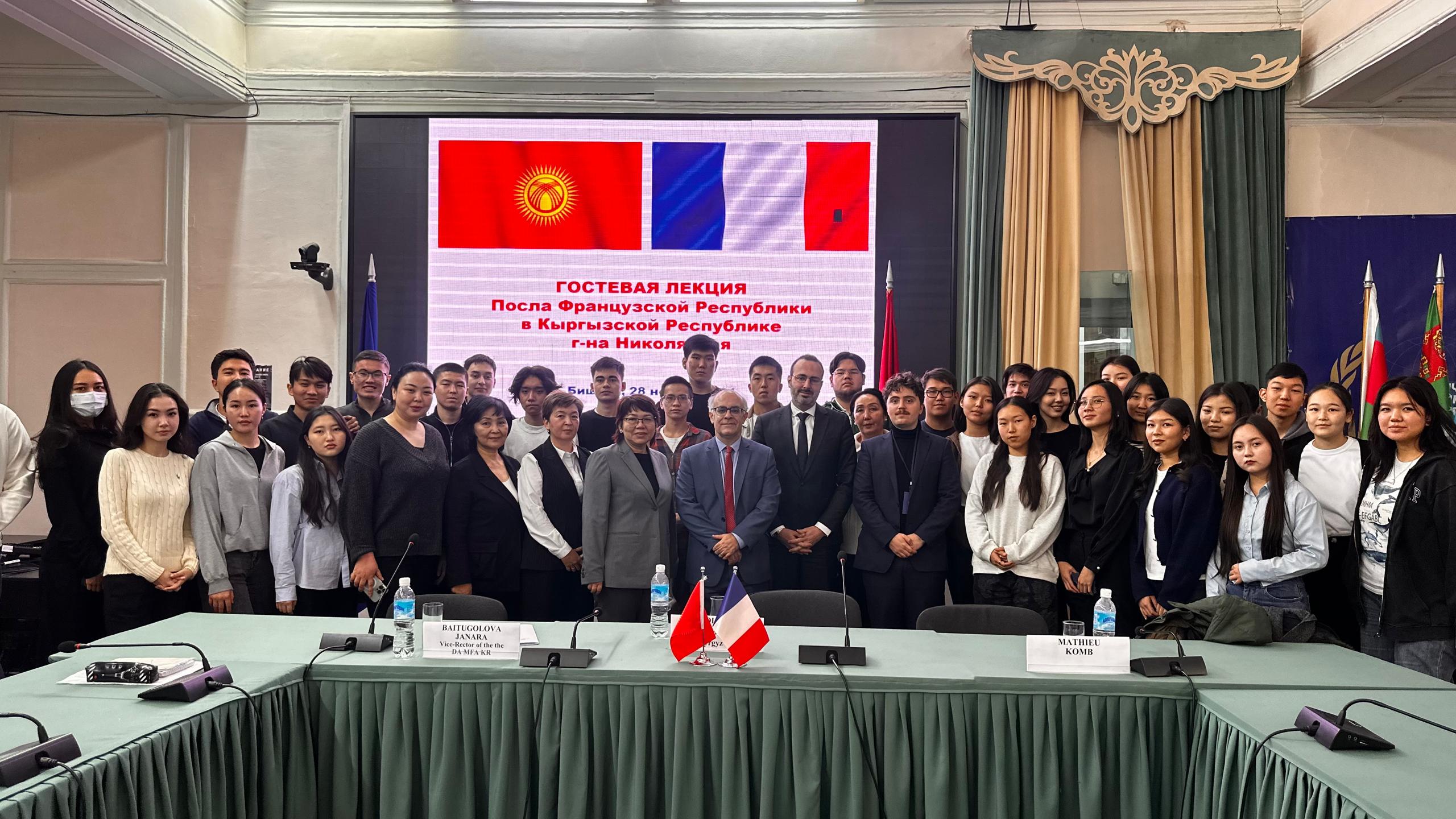 28 ноября 2024 года в Дипломатической академии МИД КР прошла гостевая лекция Посла Французской Республики в Кыргызстане Николя Фая на тему «Франция и Центральная Азия: История и перспективы сотрудничества»