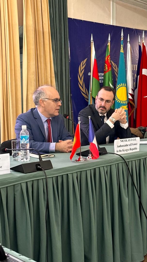 28 ноября 2024 года в Дипломатической академии Министерства иностранных дел Кыргызской Республики состоялась гостевая лекция посла Франции в Кыргызстане Николя Фая на тему «Франция и Центральная Азия: История и перспективы сотрудничества». В мероприятии также принял участие Матьё Комба, начальник отдела по Кавказу и Центральной Азии Министерства иностранных дел Франции.