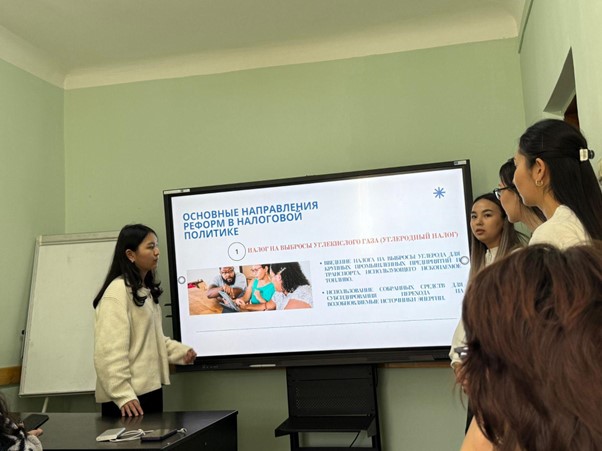 В рамках проекта GREENKG в Зеленом и Цифровом офисе Дипломатической академии МИД КР, проведена работа со студентами бакалавриата. Совместно со студентами были разработаны идеи зеленых и цифровых стартапов, направленных на внедрение устойчивых практик и инновационных решений как в университетах, так и в повседневной жизни.