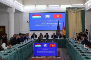 19 сентября 2025 года в Дипломатической академии Министерства иностранных дел Кыргызской Республики им. К. Дикамбаева состоялась встреча с делегацией ректоров, проректоров и профессоров ведущих университетов Венгрии, а также с Консулом Венгрии в Кыргызской Республике г-ном Таром Дёрдем. Визит проходил в рамках II Кыргызско-Венгерского форума ректоров, организованного Министерством науки, высшего образования и инноваций Кыргызской Республики.