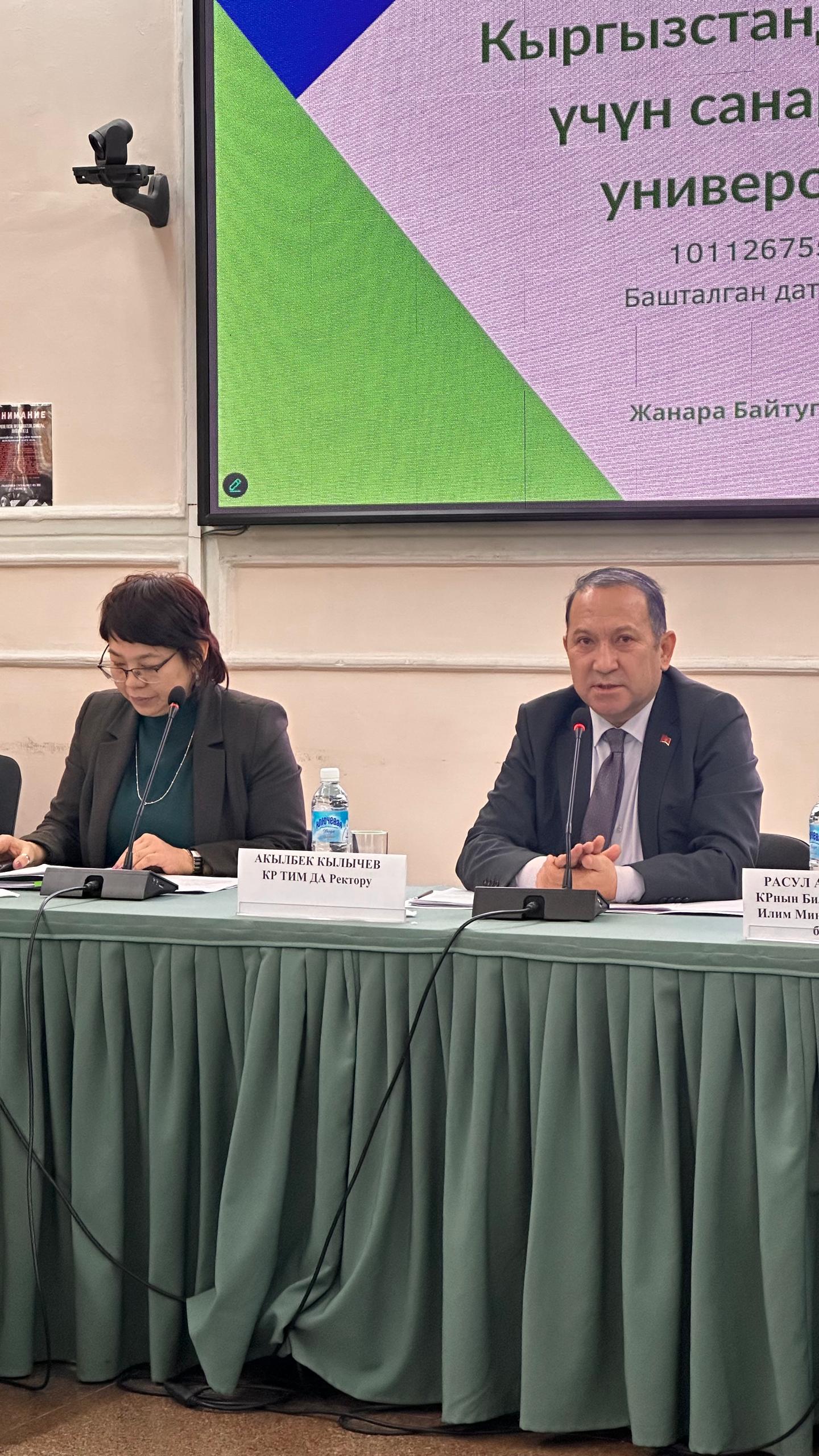 Заместитель министра образования и науки Кыргызской Республики Расул Абазбек уулу также выразил поддержку проекту и подчеркнул, что выработка и внедрение модели «зеленых» и «цифровых» университетов станет важной частью государственной стратегии модернизации образовательной системы.