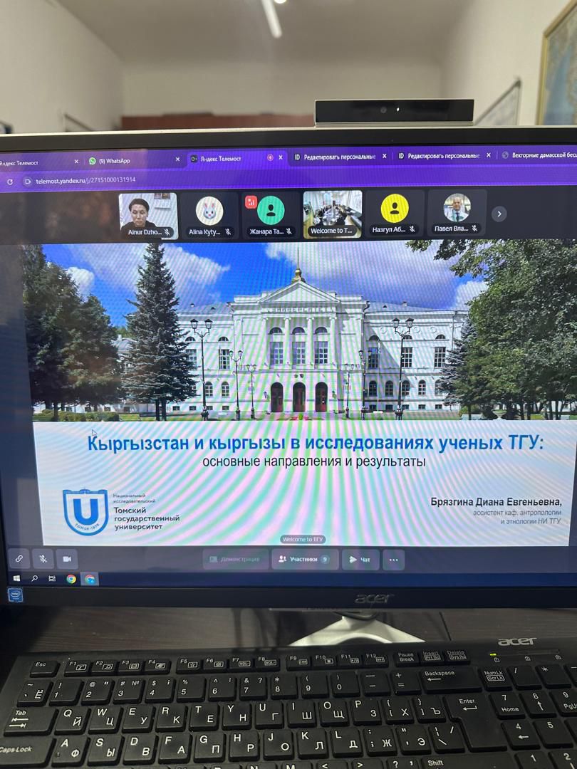 • Диана Евгеньевна Брязгина, ассистент кафедры антропологии и этнологии Факультета исторических и политических наук ТГУ, представила доклад “Кыргызстан и кыргызы в исследованиях ученых ТГУ: основные направления и результаты”.