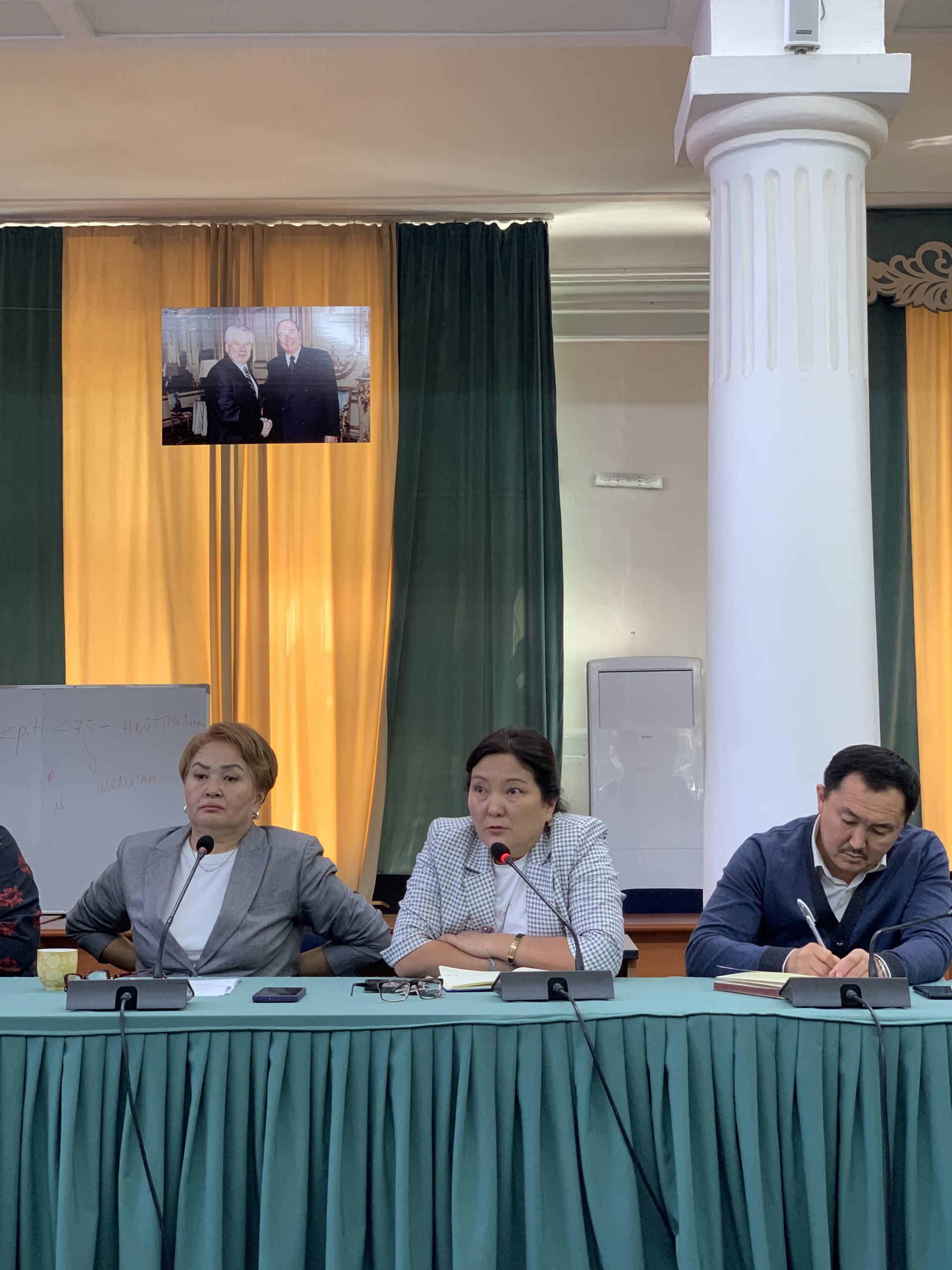 Долбоордун координатору Байтуголова Ж. долбоордун иштелип жаткан концепциясы менен бөлүштү. Керимбекова Р. жана Максат А. Вильнюс университетине болгон сапары тууралуу маалымат берип, алынган тажрыйба жана долбоорду ишке ашыруунун кийинки кадамдары тууралуу айтып беришти. Жолочубеков Н. академиянын ичиндеги ишти санариптештирүү үчүн эксперименттик веб-сайтты сунуштады. Талкуунун жүрүшүндө суроолор жана жооптор болуп, ар бир катышуучу өз пикирлерин билдирип, талкууну өз идеялары менен толукташты.