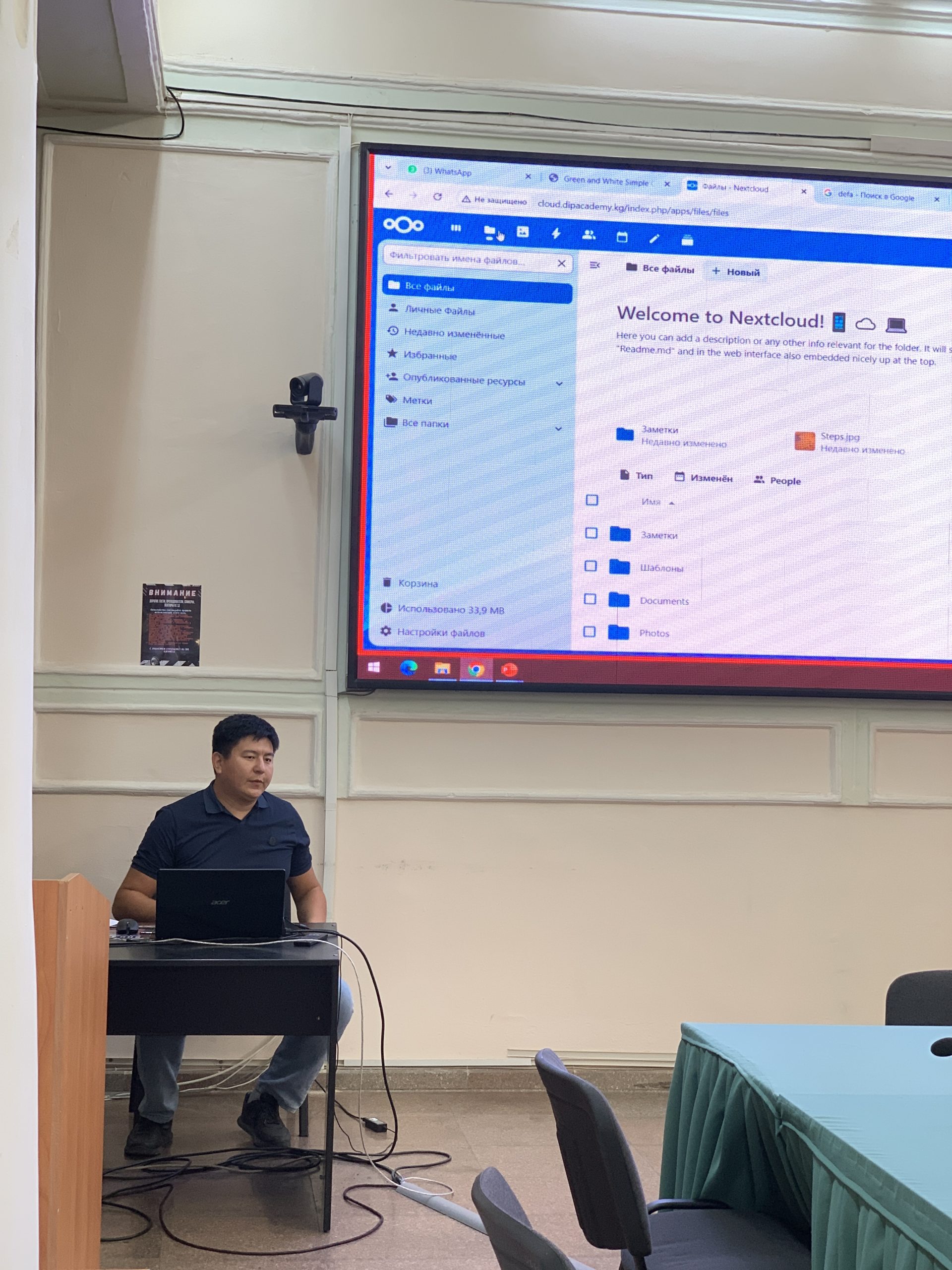 Байтуголова Ж., координатор проекта, поделилась разрабатываемой концепцией проекта. Керимбекова Р. и Максат А. и презентовали свою поездку в Вильнюсский университет поделившись полученным опытом и последующими шагами реализации проекта на основе этой информации. Жолочубеков Н. представил пробный сайт для цифровизации внутренней работы академии. В ходе обсуждения возникли вопросы и ответы, где каждый участник делился своими мнениями и дополнял обсуждение своими идеями.