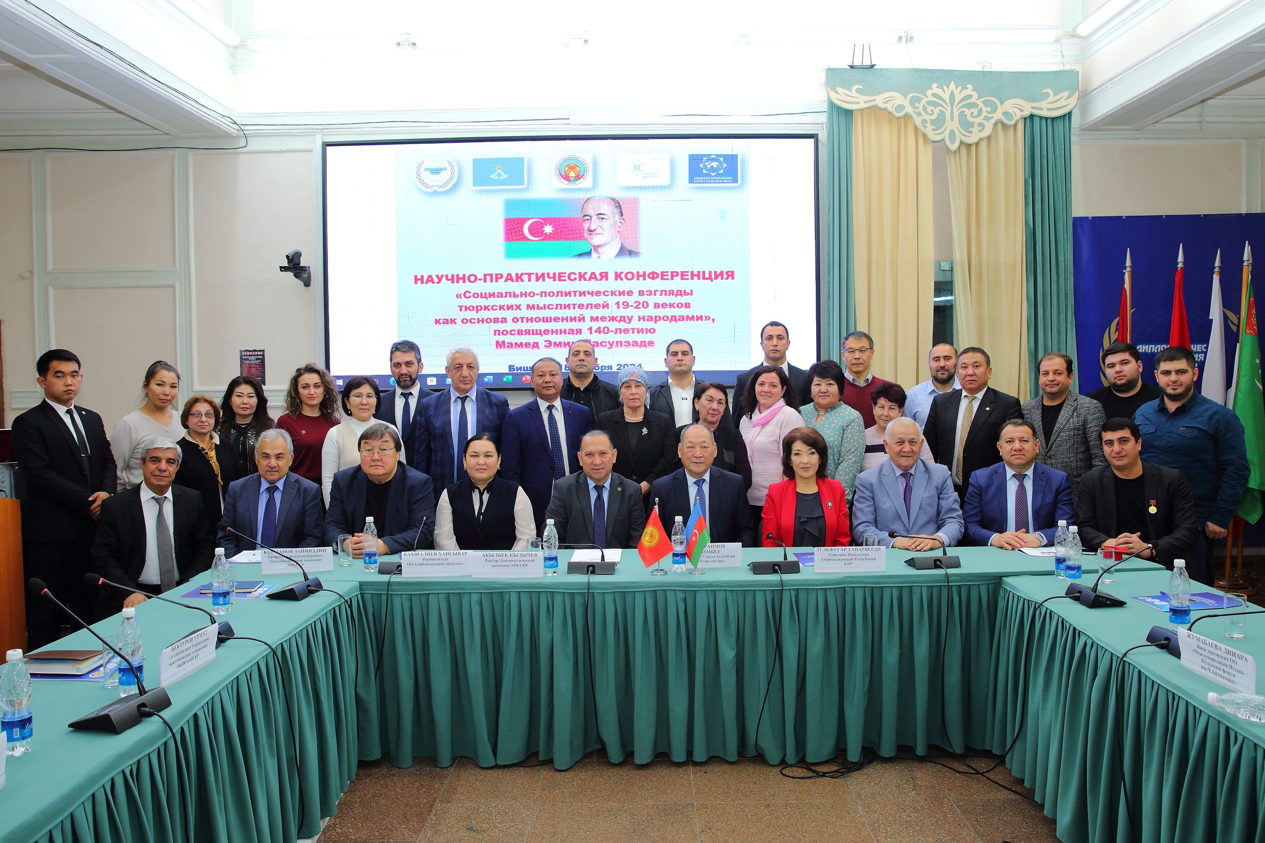 18 ноября 2024 года в Дипломатической академии Министерства иностранных дел Кыргызской Республики прошла научно-практическая конференция на тему «Социально-политические взгляды тюркских мыслителей XIX–XX веков как основа отношений между народами», посвященная 140-летию азербайджанского государственного и общественного деятеля Мамеда Эмина Расулзаде.